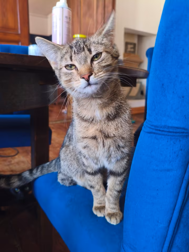 Ich bin im Juli 2025 geboren, grau getigert – und, wie meine Menschen sagen, eine kleine Persönlichkeit mit ganz viel Charme.
